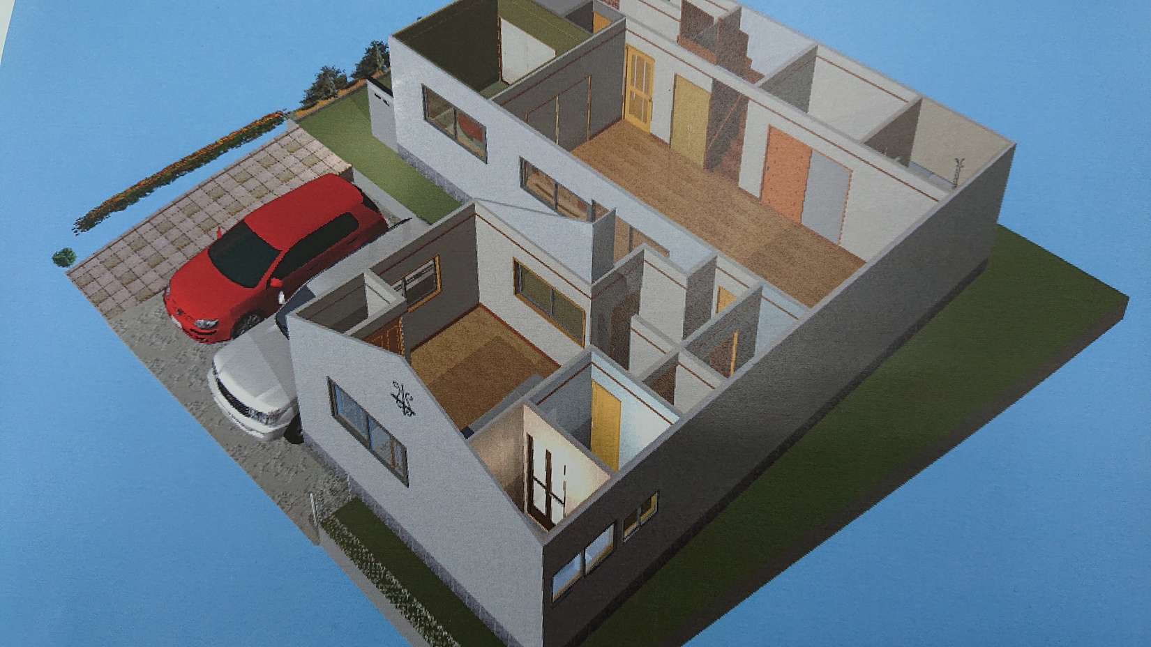 先週に改修工事をする家のパースをパソコンのソフトを使って描きました。