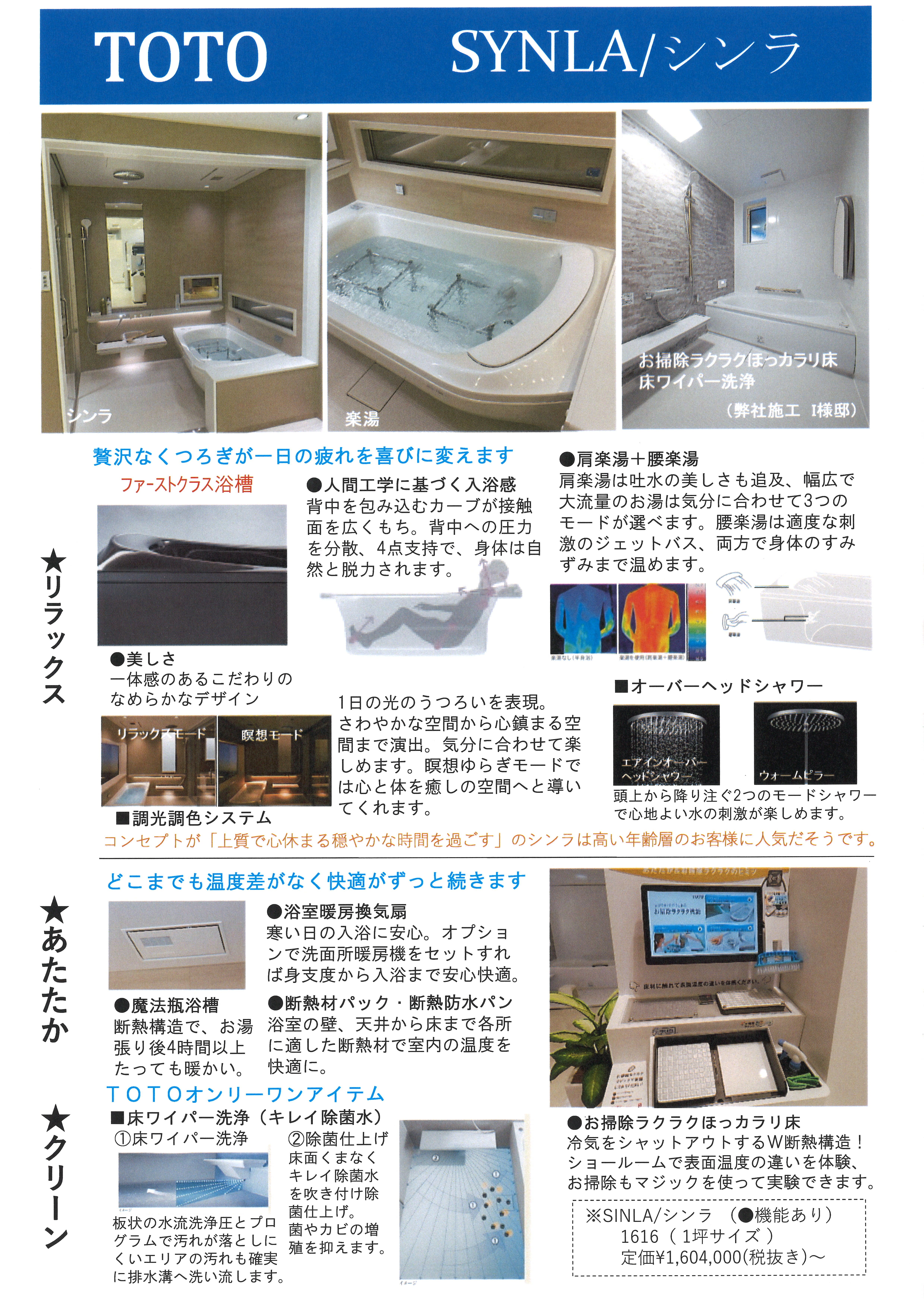 「クリナップのアクリアバス」「TOTOのシンラ」