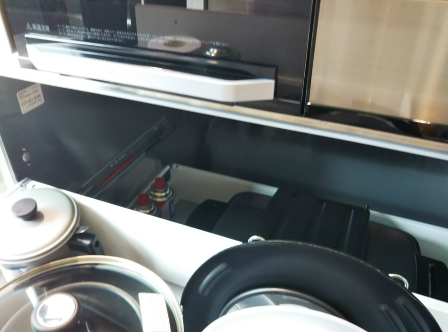 担当の方に商品の説明をして頂き、キッチンの収納の内部に安全なステンレスが使用していたり、シンク勾配が普通の物と逆になっていてシンクの隅まで水が流れたり、色々と工夫されている商品が多かったです。