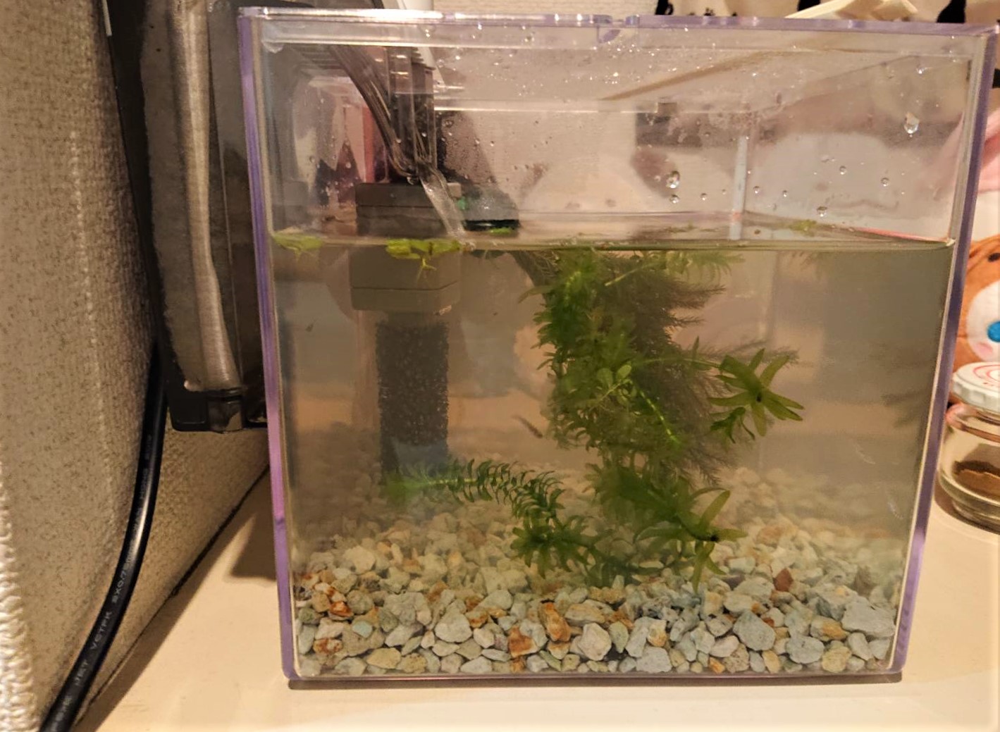 メダカを飼うのは久しぶりのことで水槽・餌等を準備をし、お家に迎えることがでいきました。
