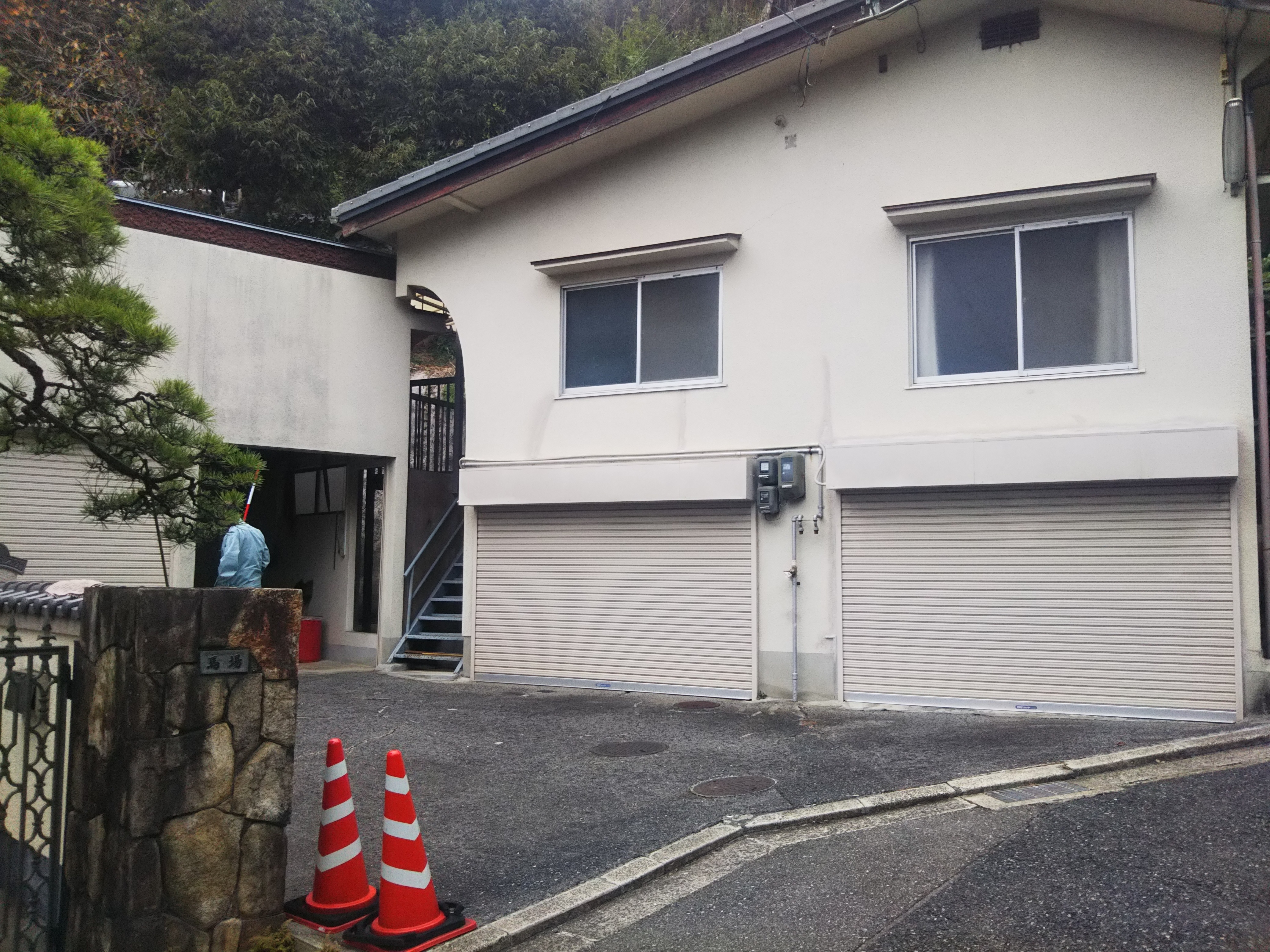 施工内容は既存建物解体、ガレージ新設、アスファルト舗装、ブロック据え付け等です。