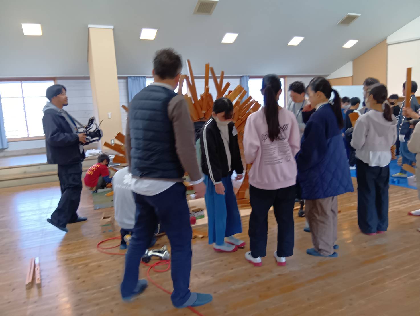 6年生が使われなくなった椅子で卒業制作