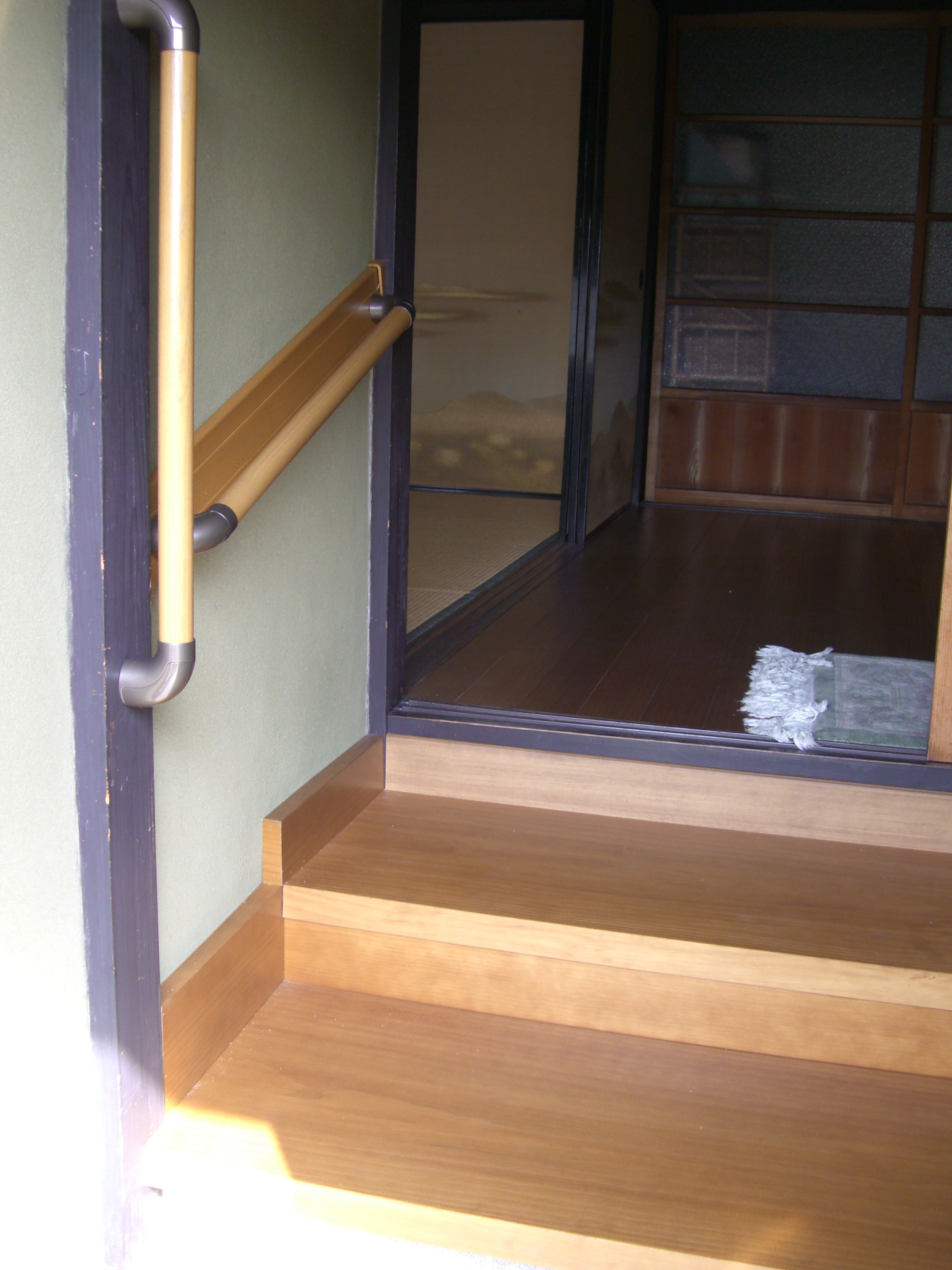 T様邸手摺取付工事 2013年3月29日 最終更新日時 : 2013年3月29日 admin_itoh 90歳近いお母様のために ご長男様夫婦が、玄関やトイレ等に 手摺を付けてあげました。 ほのぼのとする仕事をさせていただき 心温まる思いでした。 玄関は土間にタイルを貼り、框は2段にし、 手摺も、縦と横に取り付けました。 【工事着工前】 【工事完了】 \ 最新情報をチェック / FacebookX