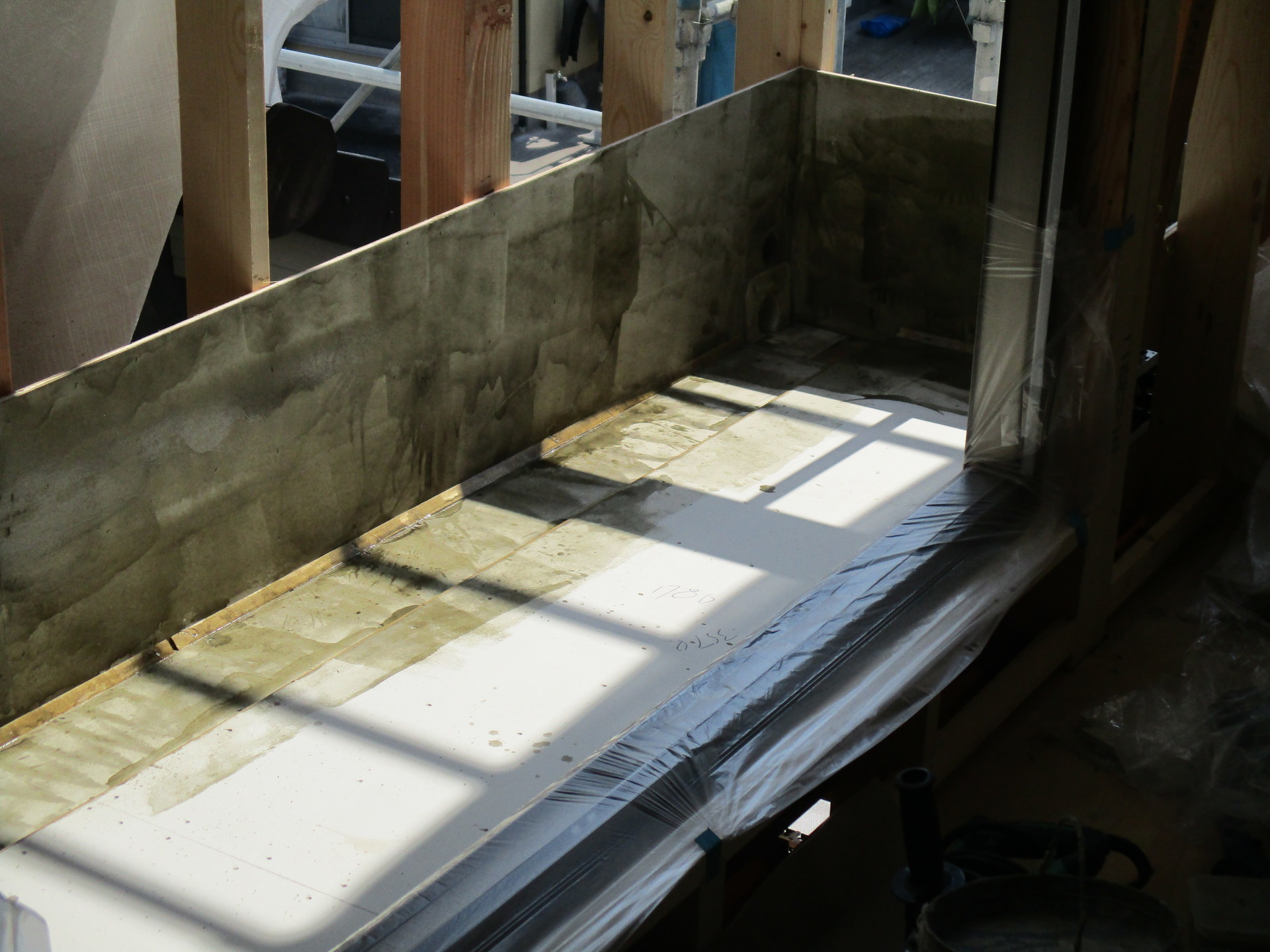 バルコニーにFRP(繊維強化プラスチック)防水を施工しています。