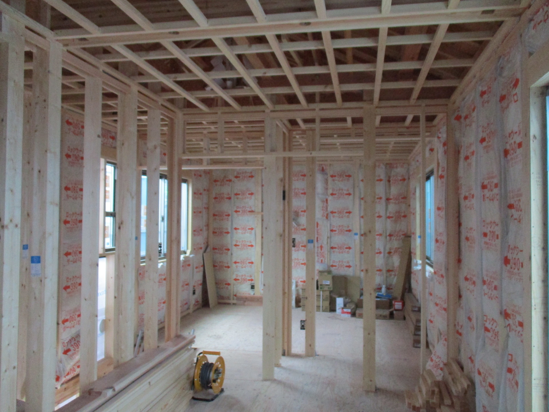 9月中旬には大工工事も終了し、現在は内装工事を行っています。